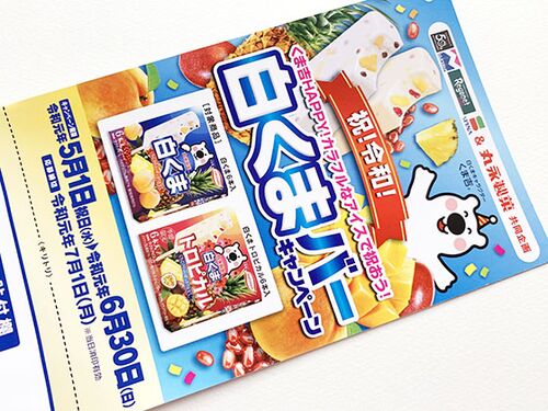 西鉄ストア・レガレット・スピナ&丸永製菓 共同開発祝!令和!くま吉HAPPY!カラフルなアイスで祝おう!白くまバーキャンペーン 賞品 CGC商品券2,000円分/10名CGC商品券1,000円分/40名 応募方法 西鉄ストア・レガレット・スピナ各店にて、対象商品を含む1…