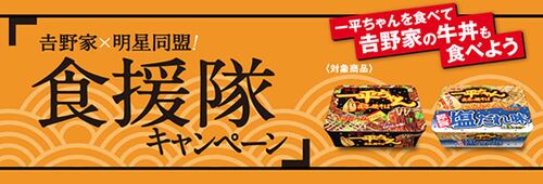 明星食品「明星 一平ちゃん夜店の焼そば」吉野家×明星同盟!食援隊キャンペーン 賞品 「吉野家お食事券(ギフティのデジタルギフト) 」計5,000名 ①1口応募:500円相当/3,000名②2口応募:1,000円相当/1,500名③3口応募:2,000円相当/500名※使用期限は20…