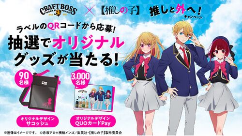 クラフトボス×推しの子推しと外へ!キャンペーン 賞品 <A賞>オリジナルデザインサコッシュ(透明ポケット付き)/各90名、総計180名 <B賞>QUOカードPay 200円分/各3,000名、総計6,000名 応募方法 サントリー飲料自動販売機、または対象店舗で購入した…