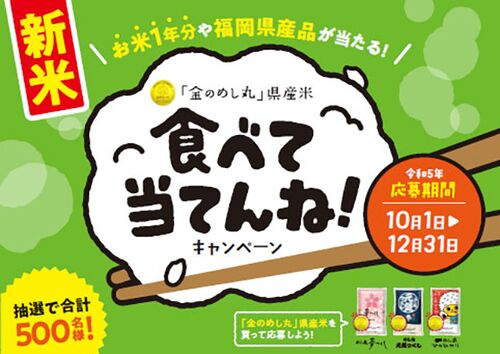 「金のめし丸」福岡県産米食べて当てんね!キャンペーン 賞品 <A賞>「金のめし丸」県産米1年分(60㎏)/10名 <B賞>博多和牛 ロースステーキ/30名 <C賞>はかた地どり水炊きセット/60名 <D賞>JAタウンギフトカード5,000円分/150名 <E賞>八…