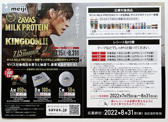 「ザバス MILK PROTEIN × 映画「キングダム2」公開記念 キャンペーン」係