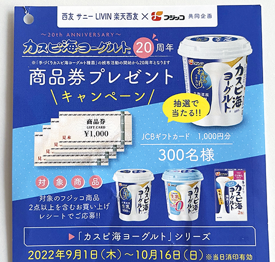カスピ海ヨーグルト20周年 商品券キャンペーン