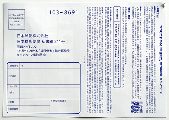 宛先/〒103-8691 日本郵便株式会社 日本橋郵便局 私書箱211 号